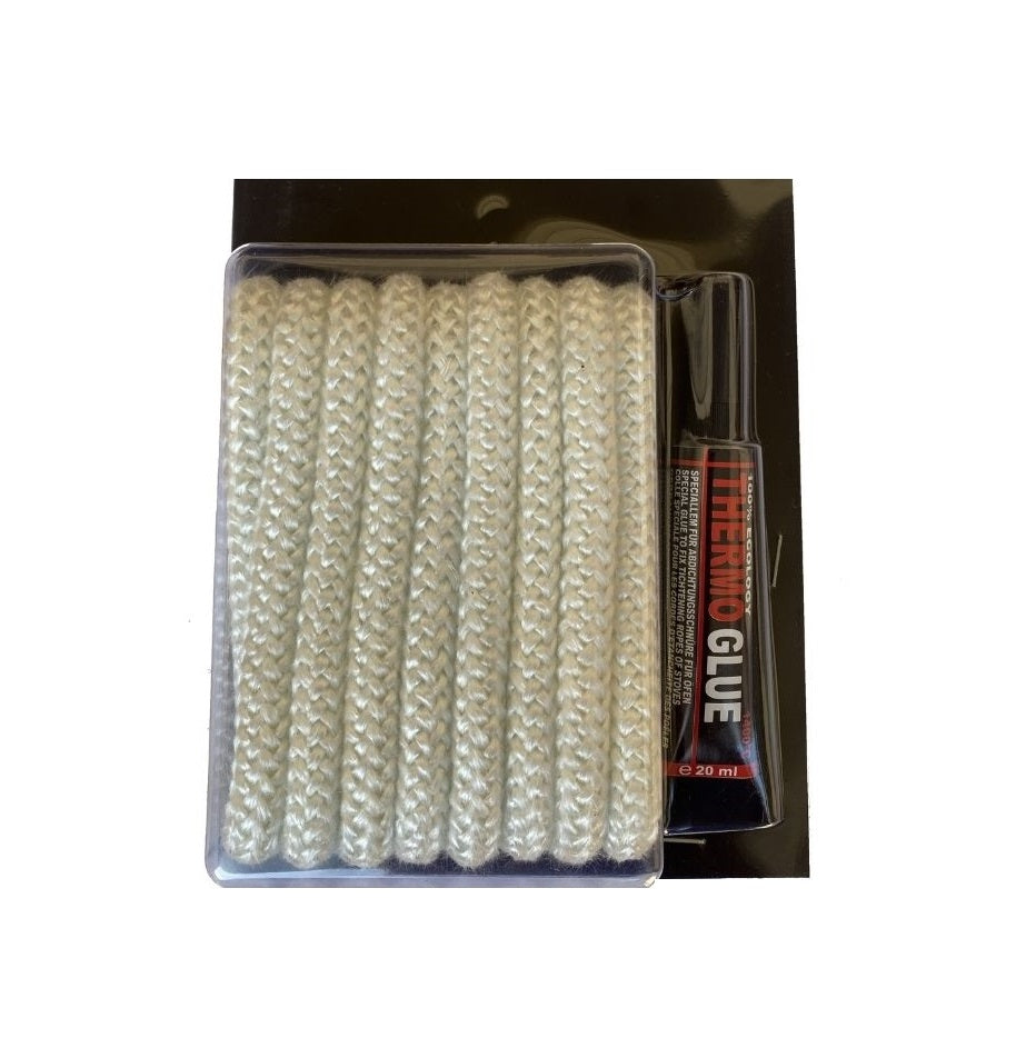 Curatati suprafata in care urmeaza sa fixati snurul. Punet un strat subtire de adeziv termorezistent pe usa, apoi atasati snurul fara a-l intinde prea mult. Presati usor snurul, apoi inchideti usa. Lasati sa se usuce 24 de ore. Pentru inlocuirea snurului, urmati instructiunile de mai sus numai dupa ce ati indepartat snurul uzat si adezivul existent. Atentie! Pentru aceasta operatiune, usa semineului/ centralei, trebuie sa fie rece.