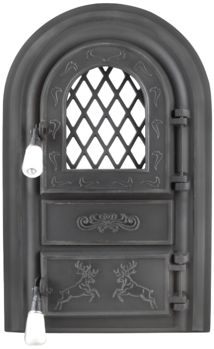 Usa din fonta neagra cu geam si motive cu cerbi, ce poate fi folosita atat pentru renovarea semineelor vechi cat si pentru construirea semineelor noi.