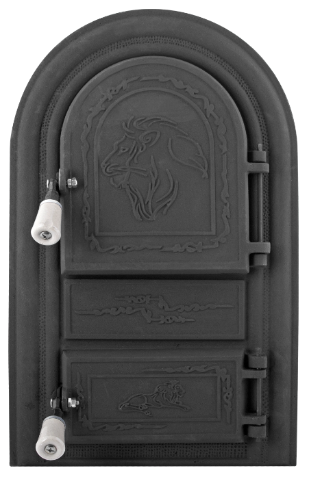 Usa pentru soba cu cenusar, tip monobloc, confectionata din fonta cenusie turnata cu model reliefat, acoperita pentru rezistenta la coroziune cu vopsea neagra mata.