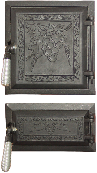Usa de soba din fonta cu cenusar, model Struguri, avand urmatoarele caracteristici: